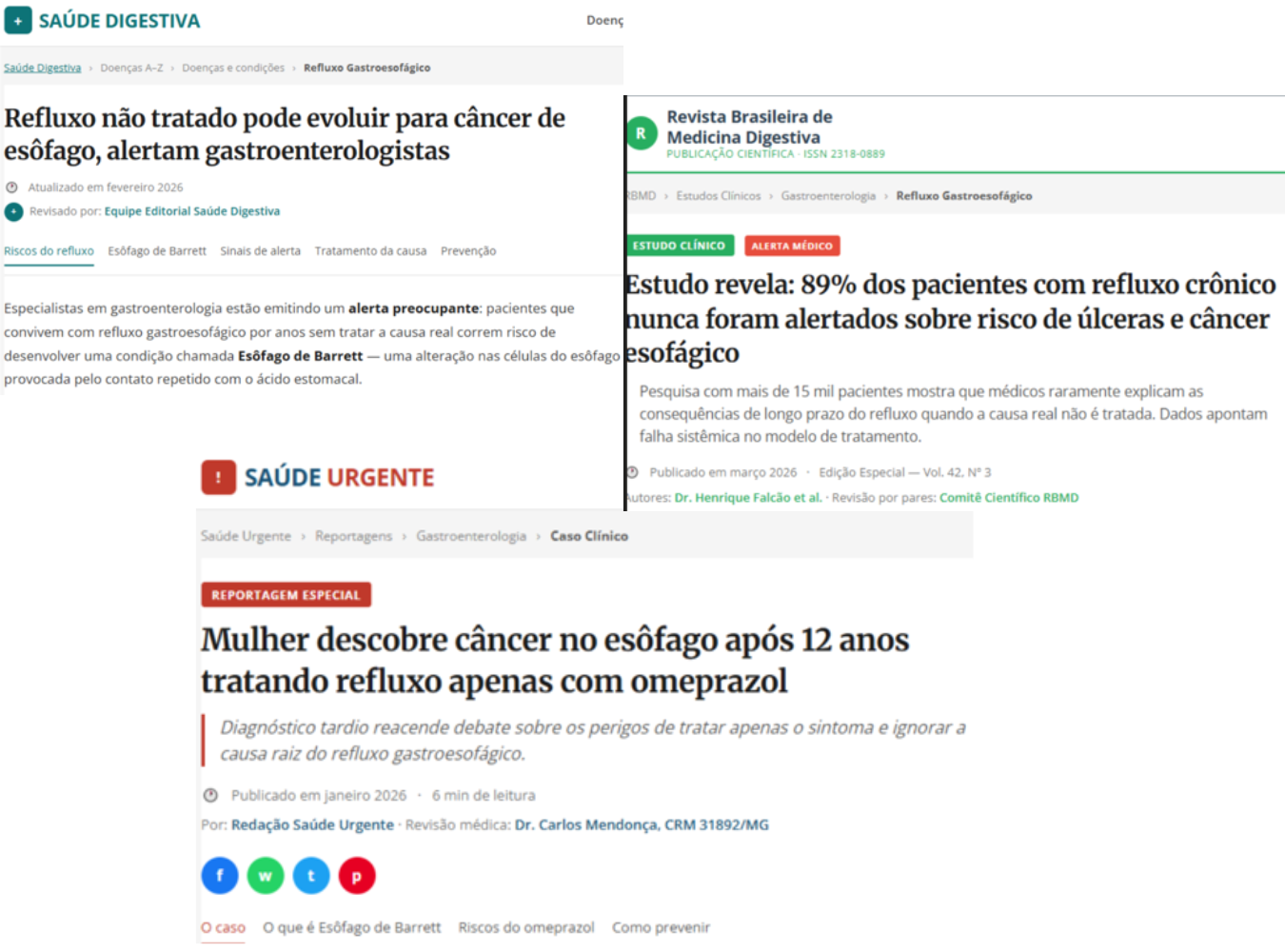 👉 O refluxo não é um simples incômodo. Quando a causa real não é tratada, ele pode progredir silenciosamente para quadros graves — incluindo lesões, úlceras e alterações celulares perigosas.